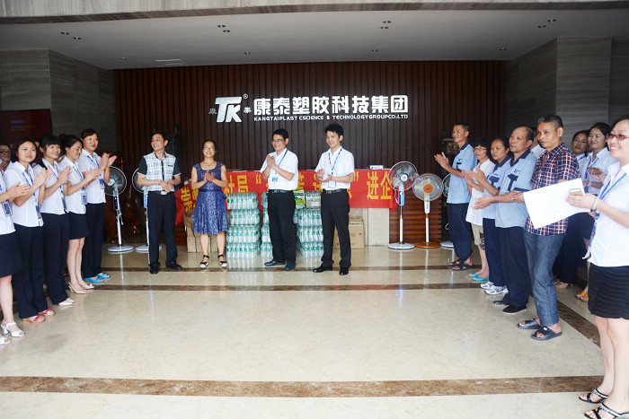 2014.08炎炎夏日 清涼關(guān)懷---崇州市人力資源和社會(huì)保障局“送清涼8月7日下午,崇州市人力資源和社會(huì)保障局副局長、工會(huì)主席李茂清帶領(lǐng)局“送清涼”慰問組,來到康泰塑膠科技集團(tuán)有限公司,工會(huì)主席吳彬及人事行政中心呂旭梅經(jīng)理接待了慰問組。人社部門為公司職工送上了電風(fēng)扇、礦泉水、和防暑物品,并將有關(guān)勞動(dòng)...閱讀人數(shù):14785 -